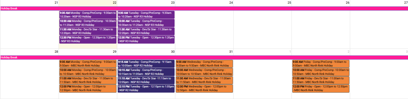 NSC Weekly Schedule for Dec 21st to Jan 3rd